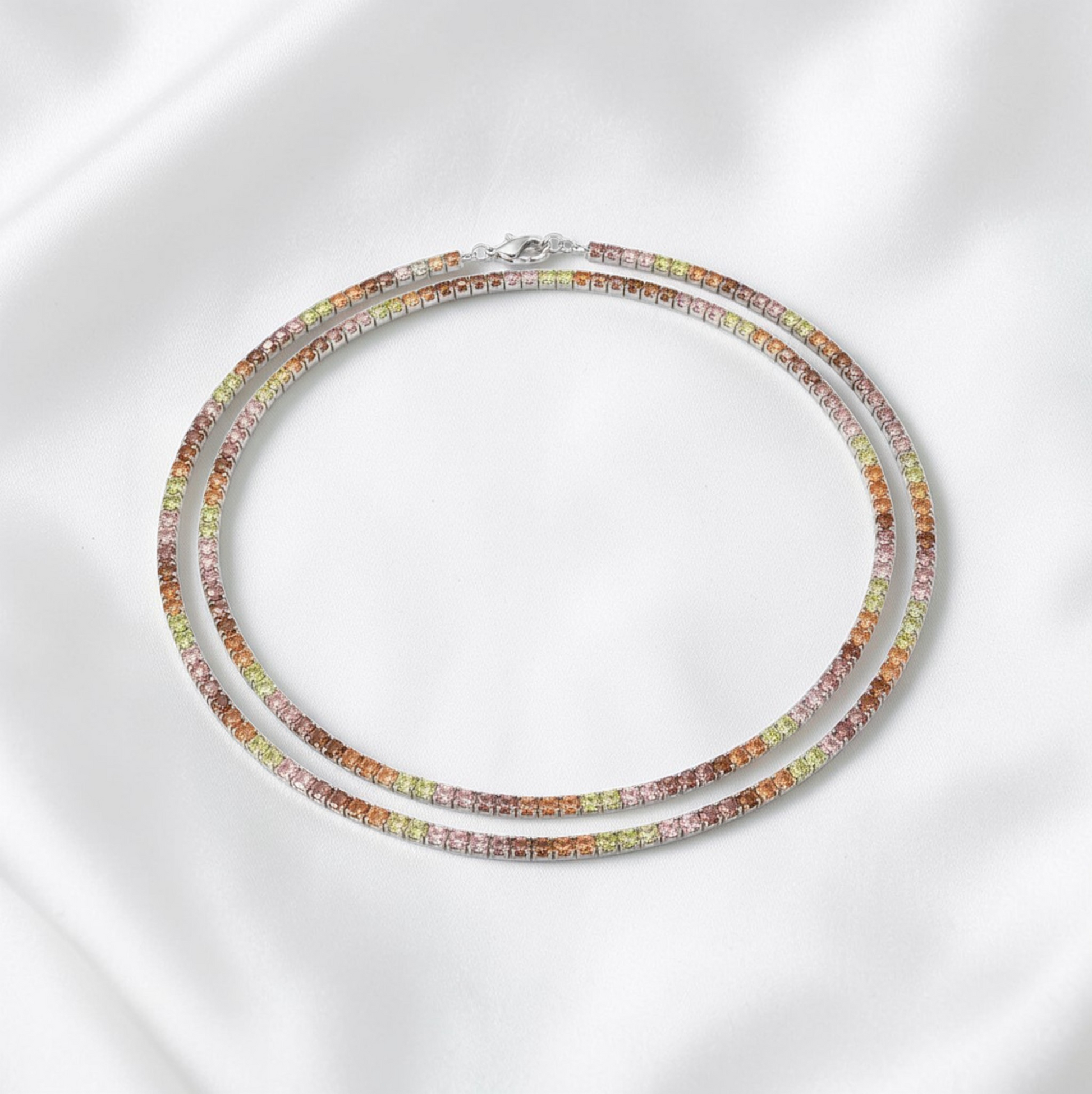 Harlequin Tennis Necklace, 3mm, 925 Silver and Zirconia