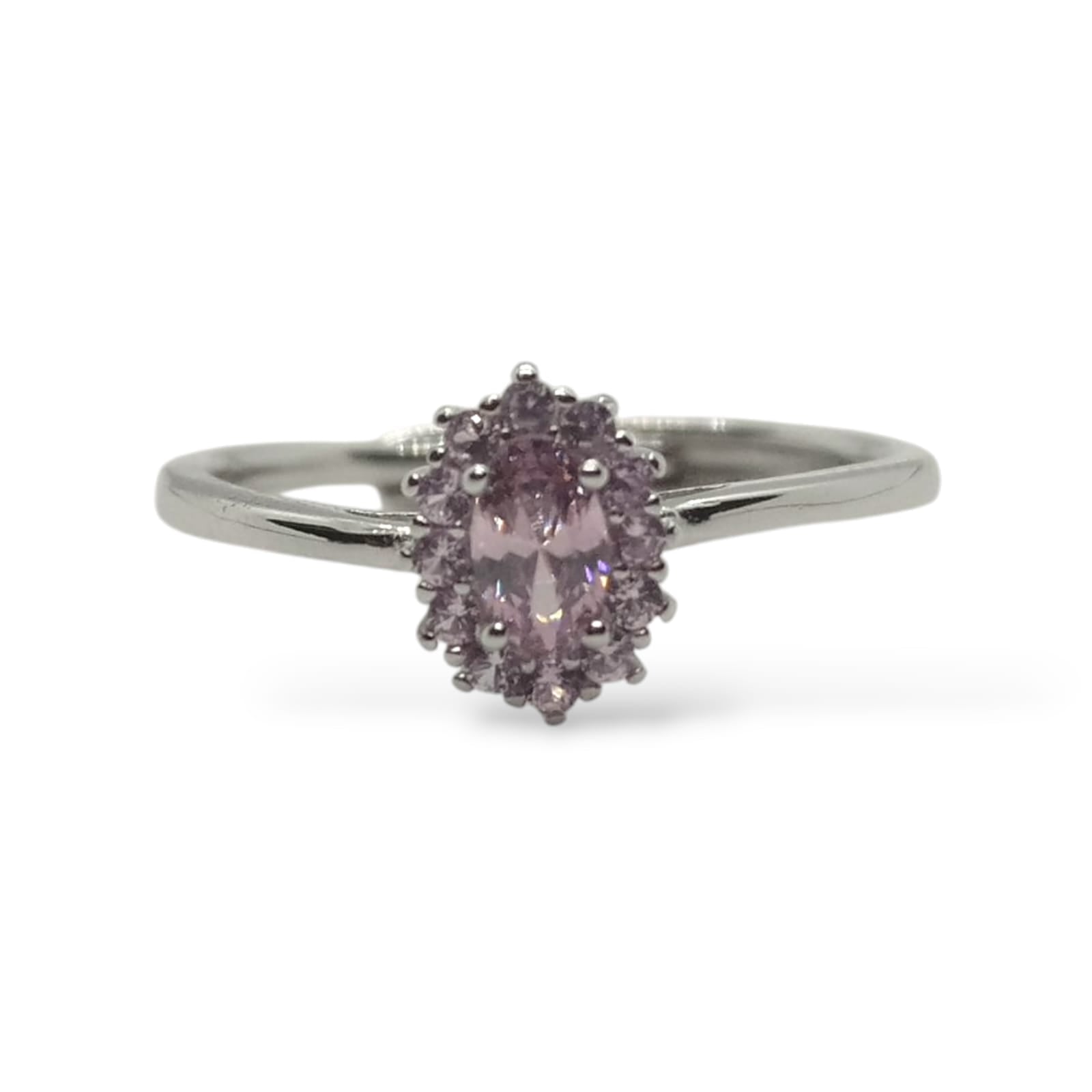 - Pietra preziosa centrale ovale e zirconi in corona. Incastonati in cestello profondo.