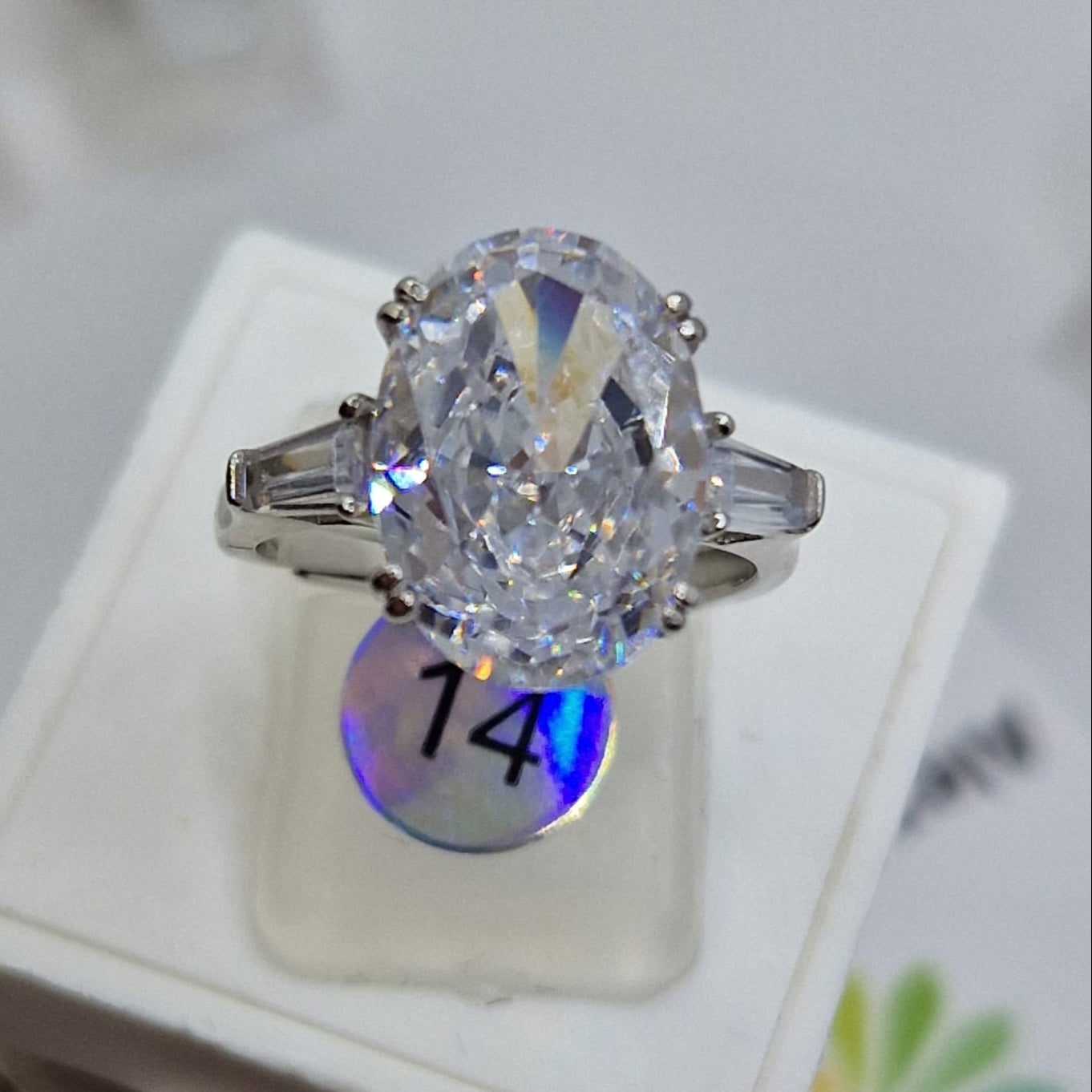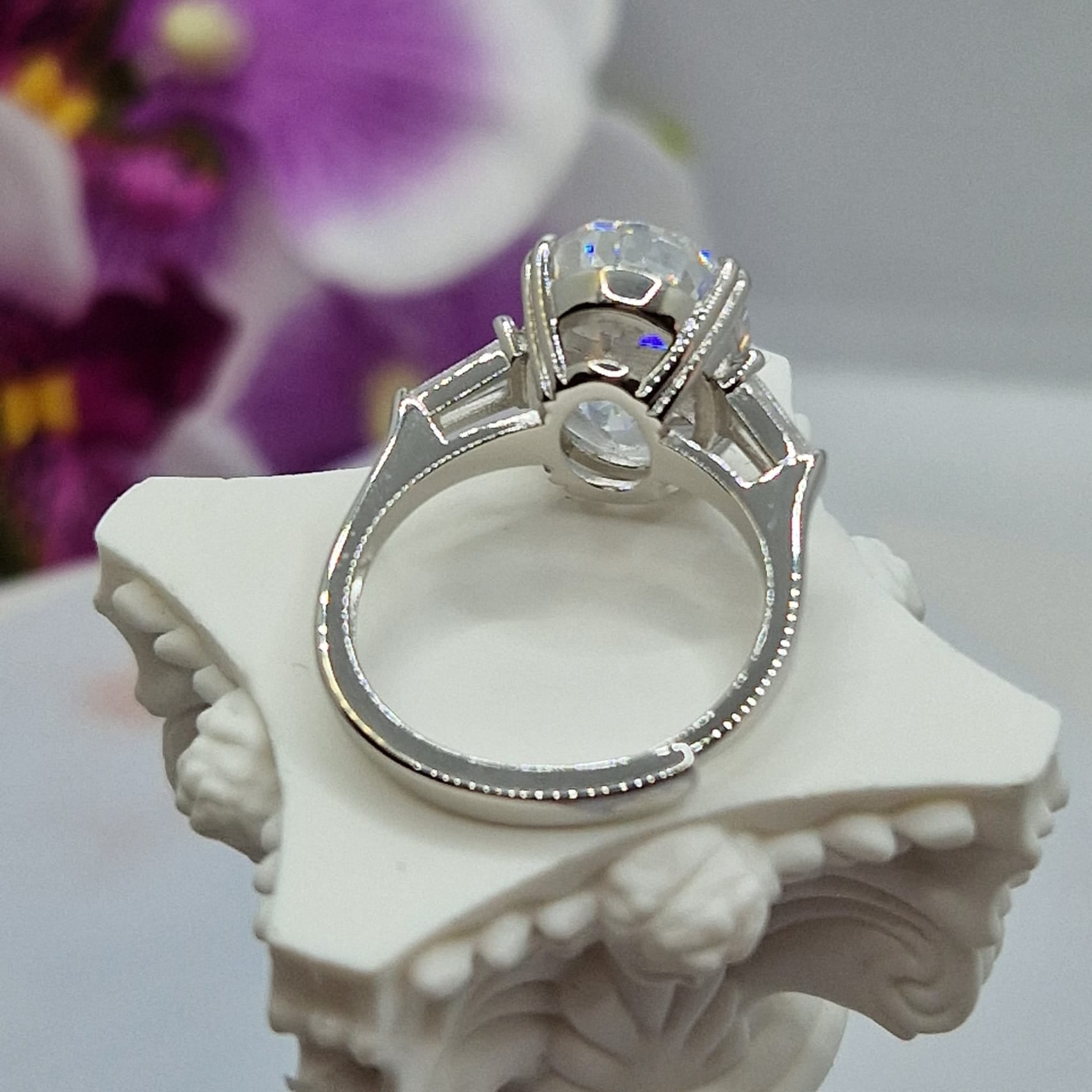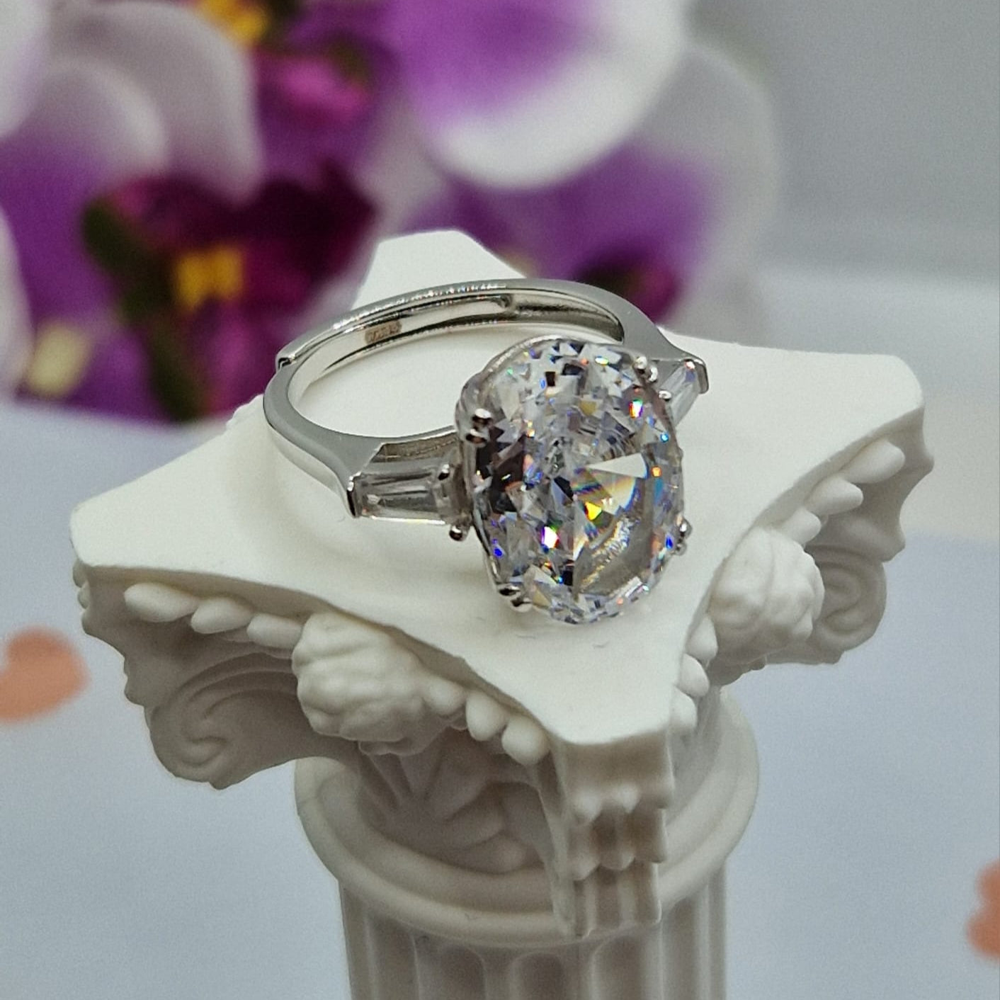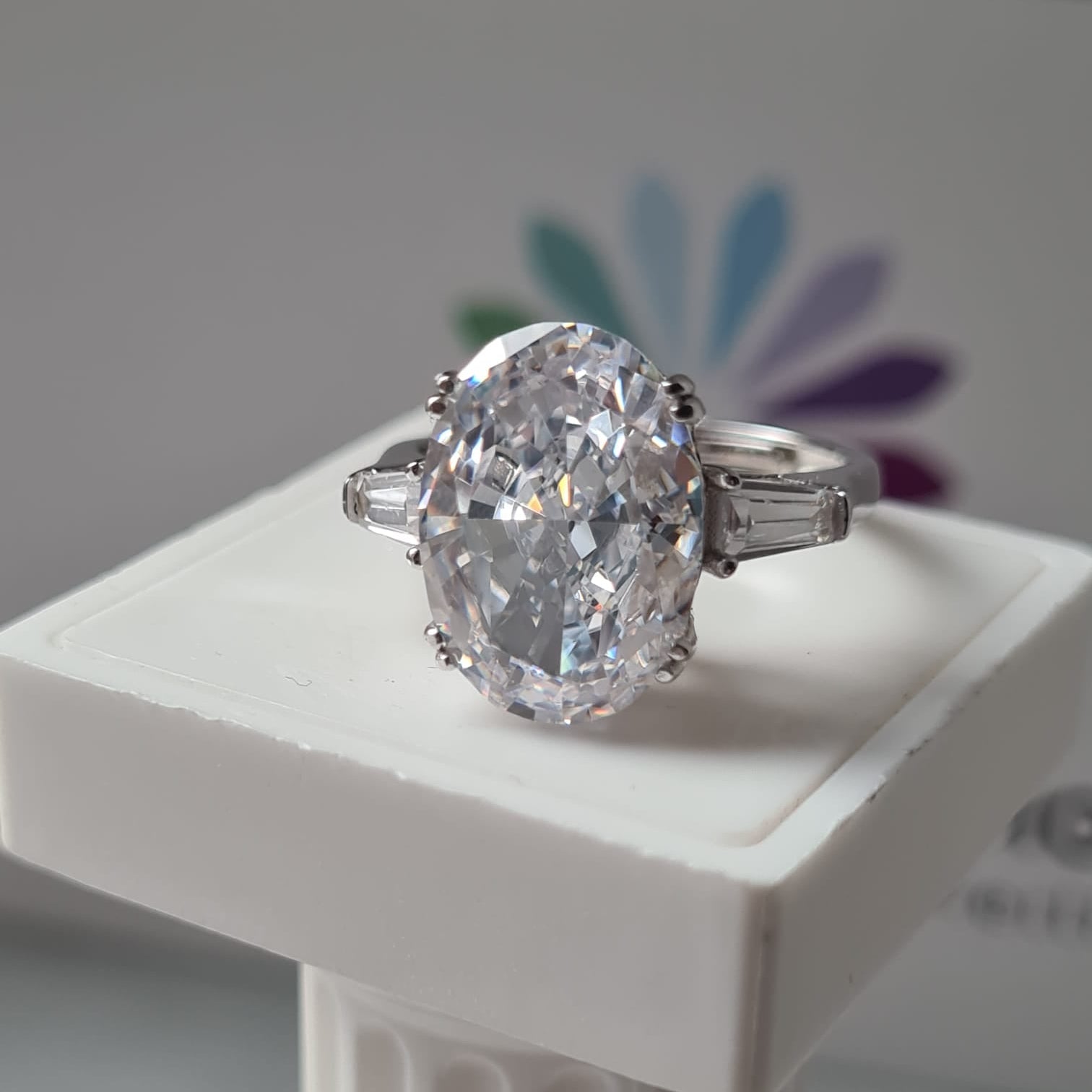Anello Ovale Big composto da grande pietra ovale incastonata su gambo impreziositi da 2 piccoli zirconi bianchi lateriali.