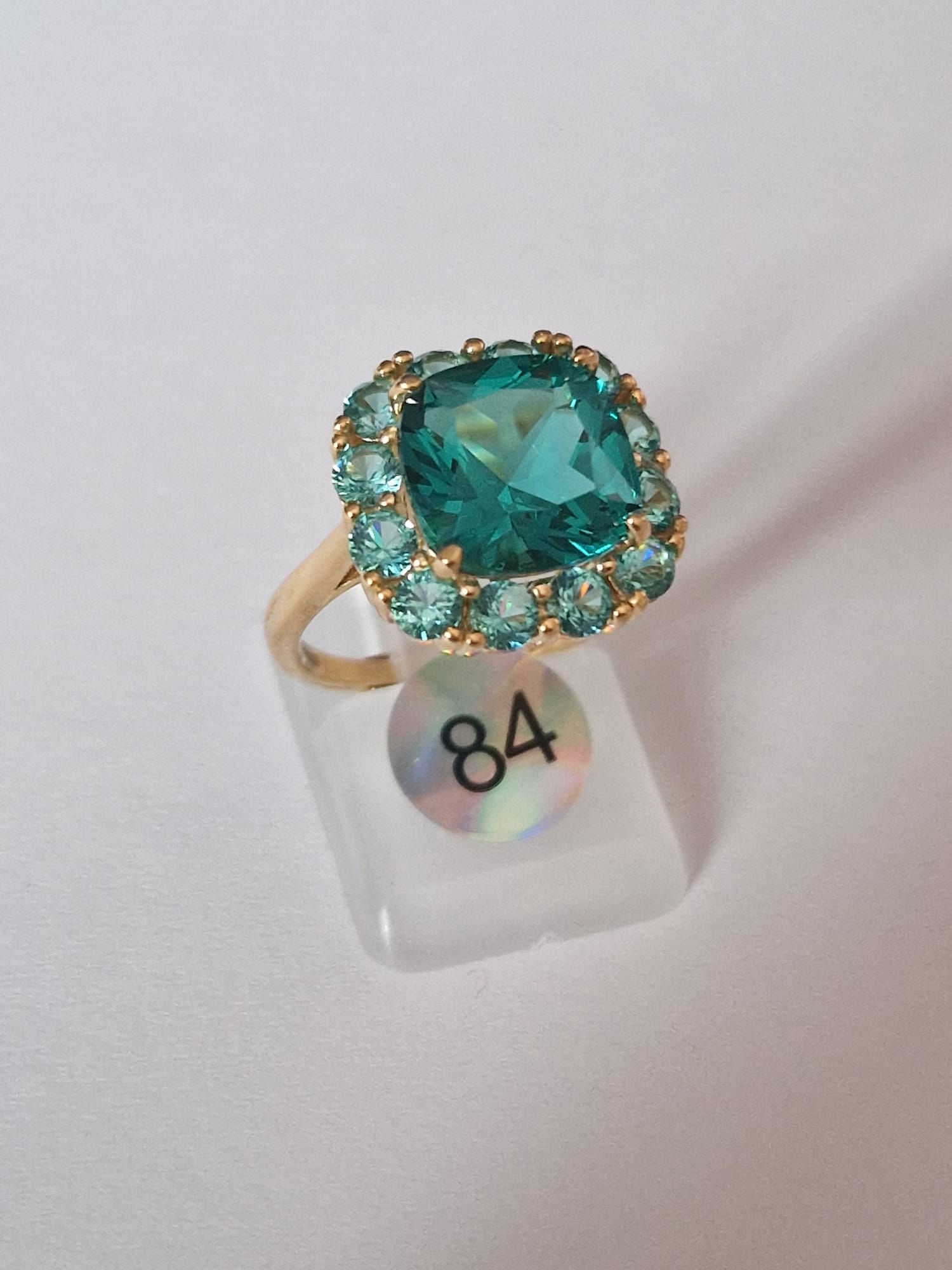- Pietra: Grande zircone centrale quadrato, puro e luminoso, circondato da corona di zirconi