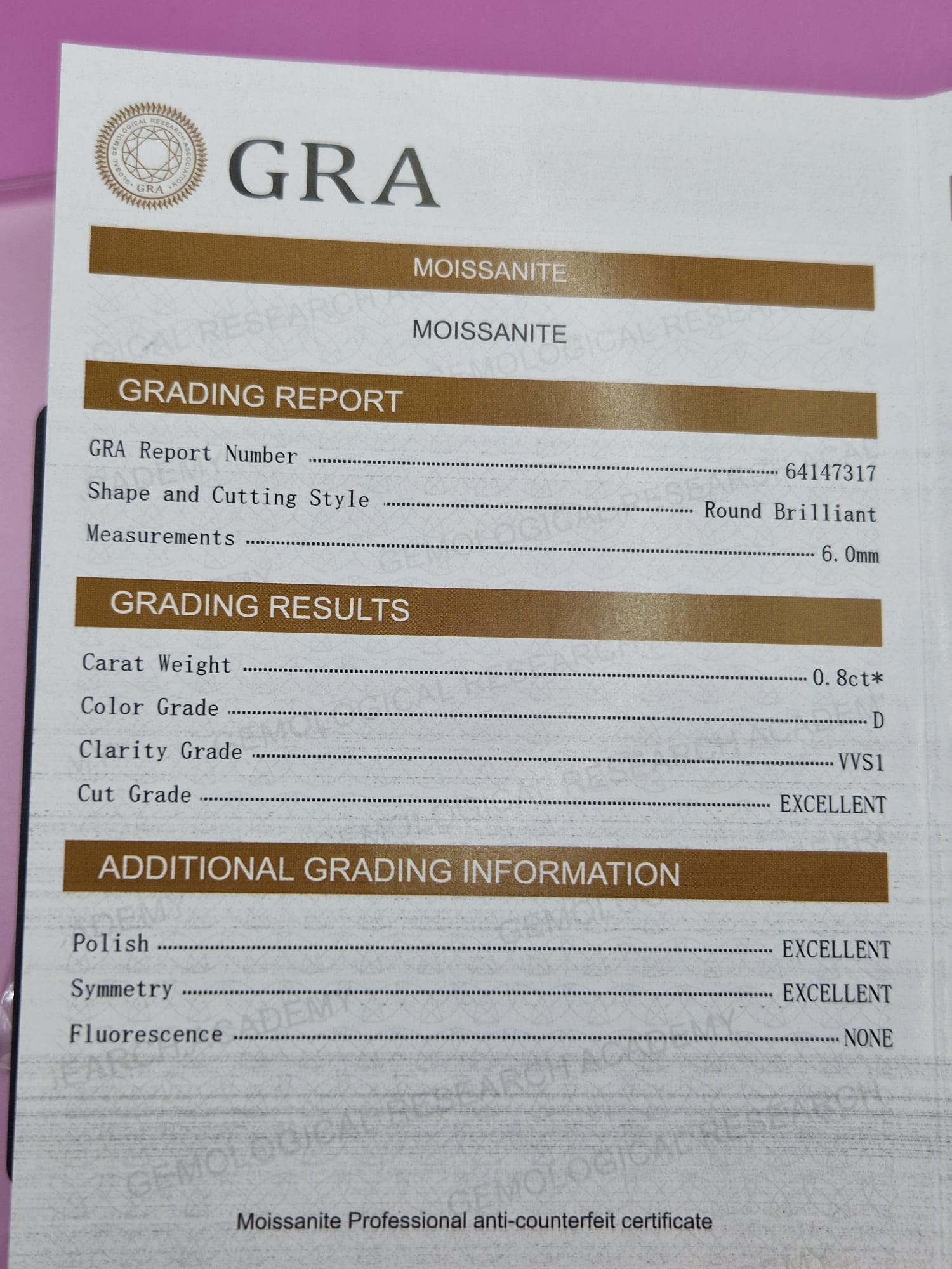 | MOISSANITE | D |