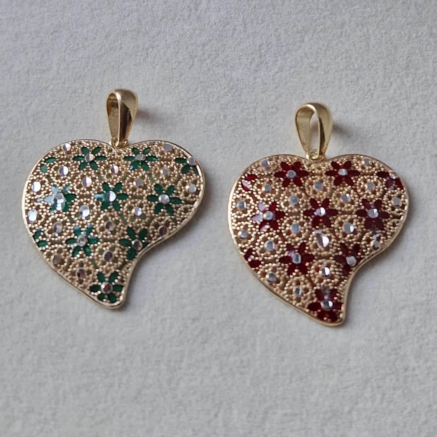 Ciondolo Cuore Piatto, in Filigrana, Argento 925 e Bagno in Oro