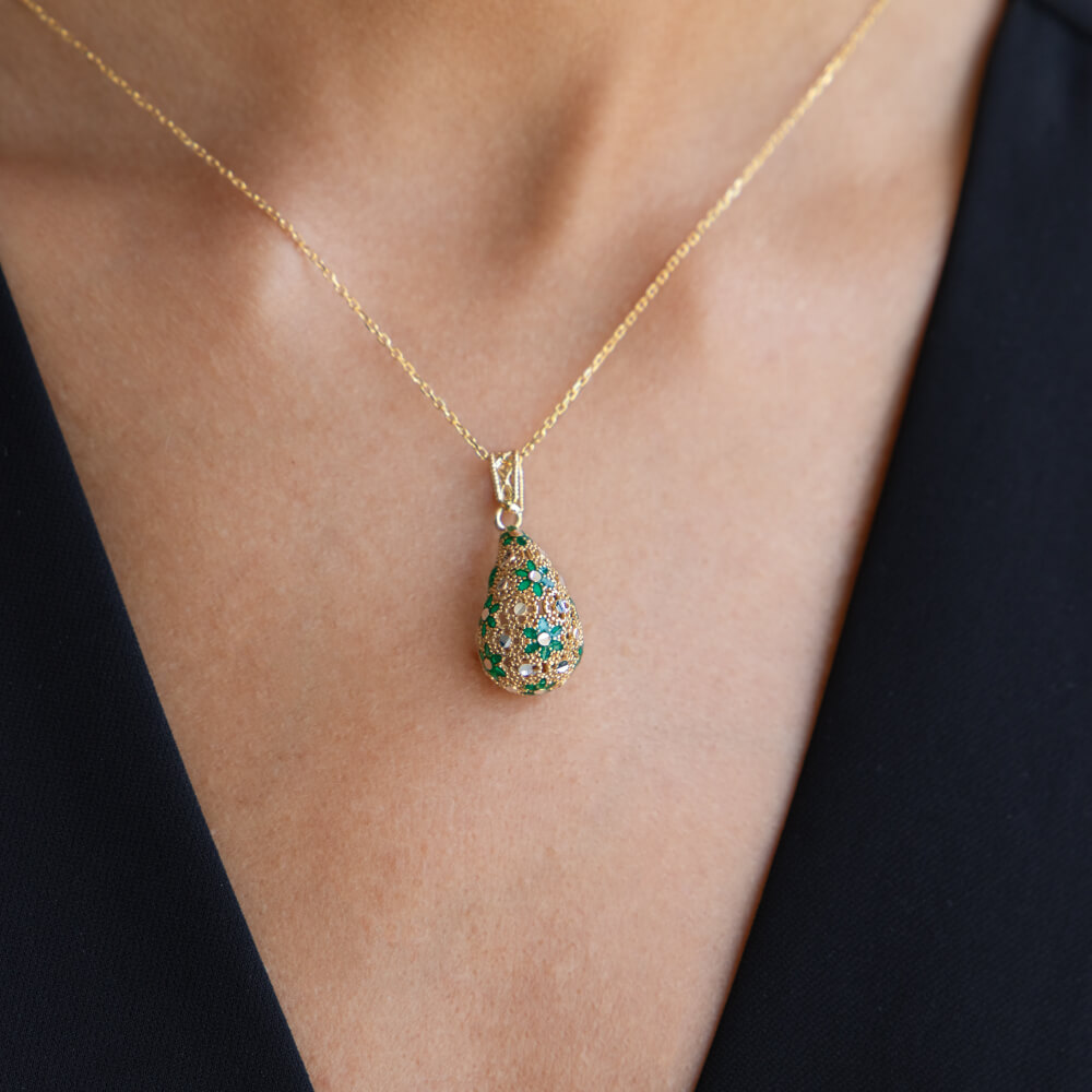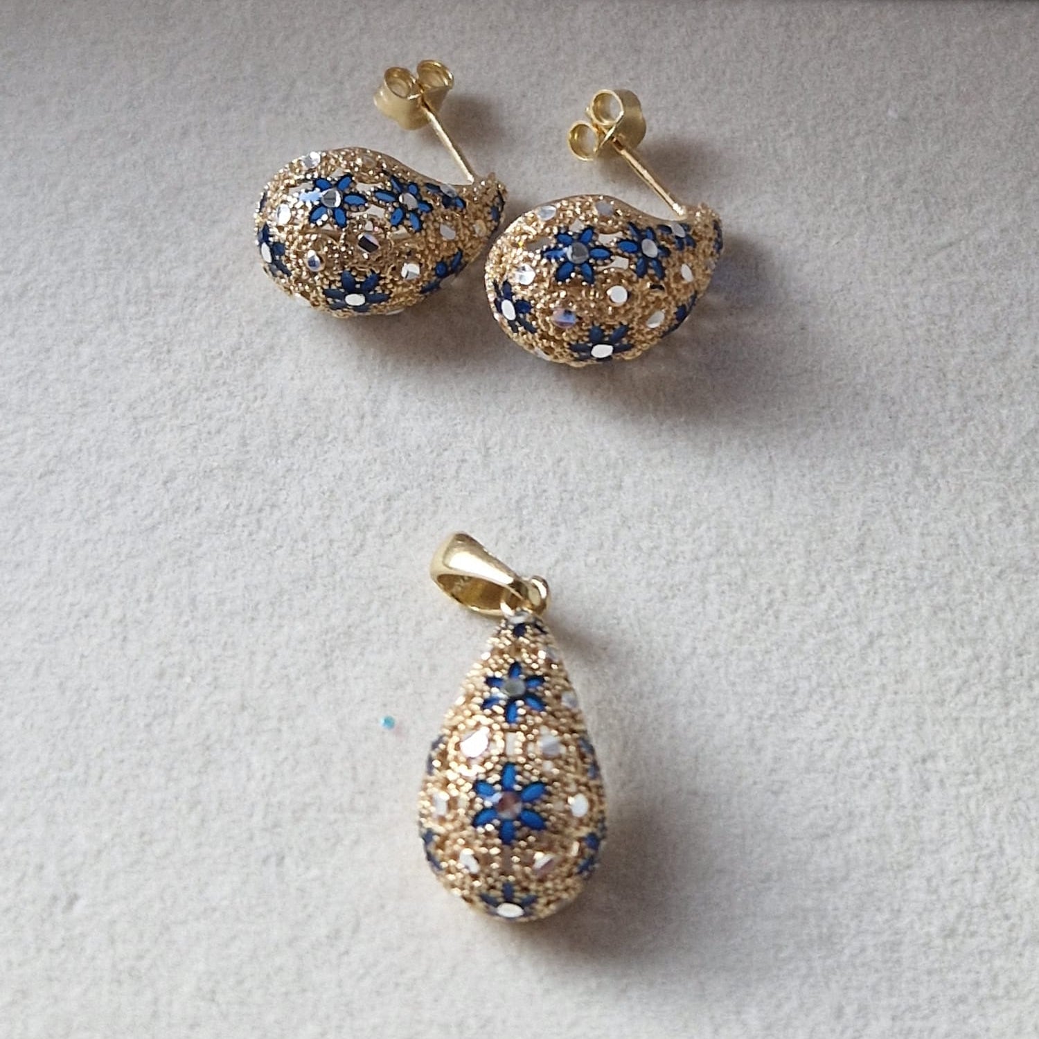 Ciondolo Goccia, Preziosa, in Filigrana, Argento 925 e Bagno in Oro