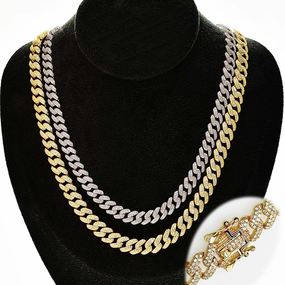 Collana con catena grumetta e cubic zirconi bianchi incastonati.