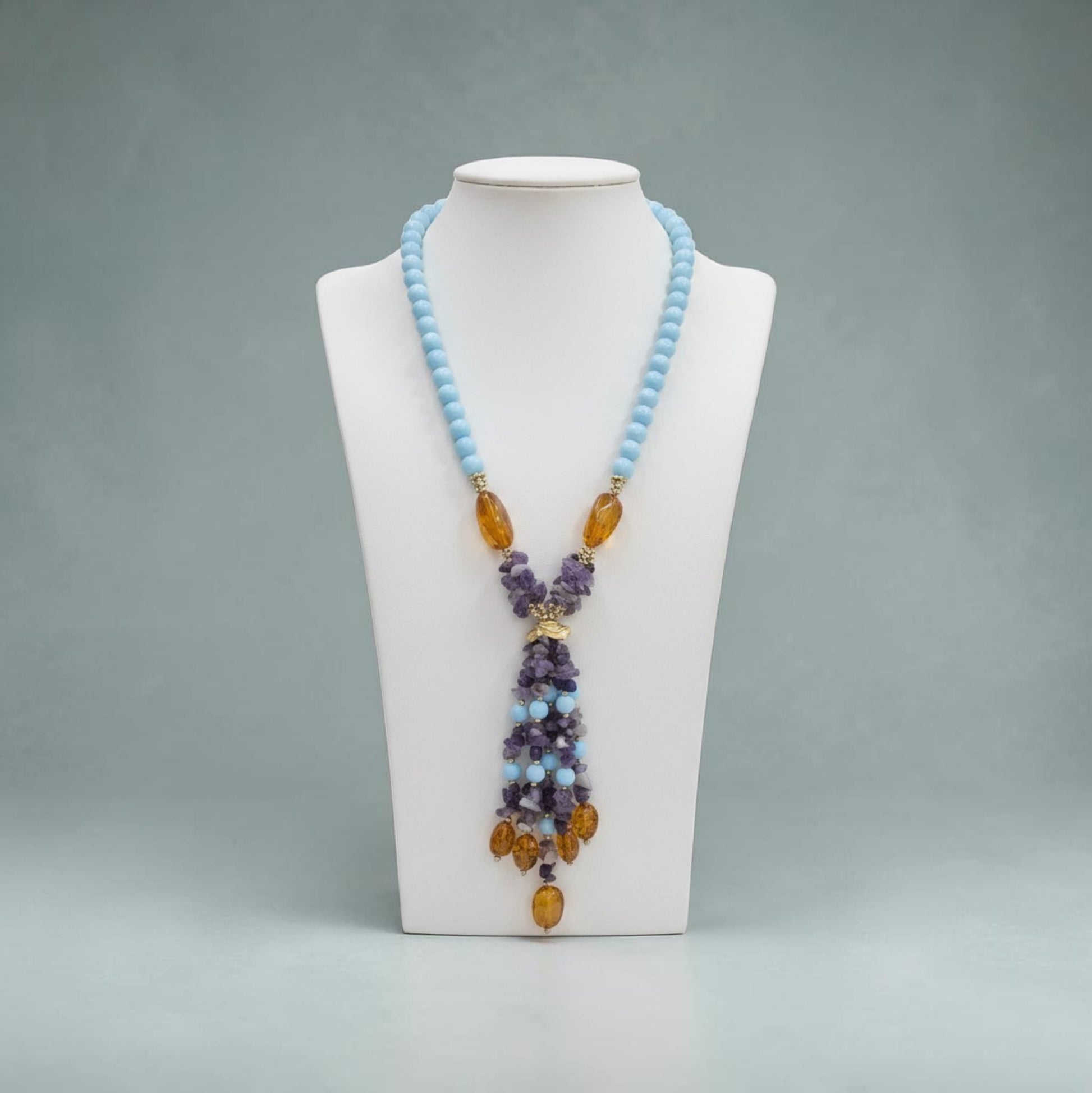 Collana Lunga ad Y con Ametista, Pasta di Turchese e Ambra