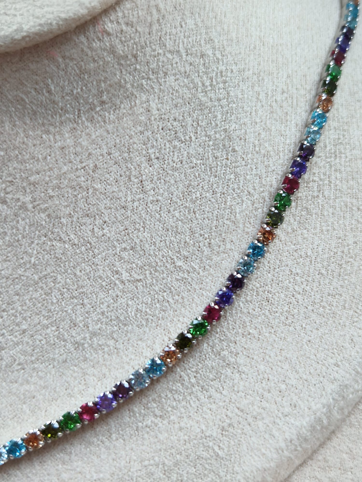 Collana Tennis Multicolor Inverno, 3mm REGOLABILE, Argento 925 con Zirconi