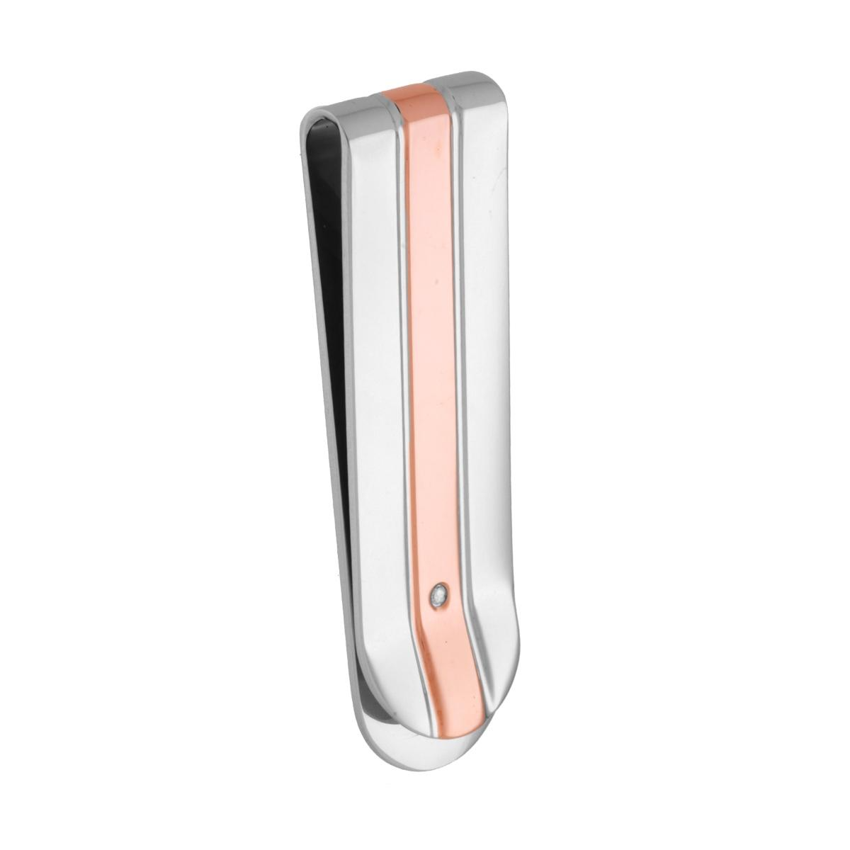 Fermasoldi con lavorazione liscia e lucida, con fascia colore rosè e cubic zirconia bianco incastonato.