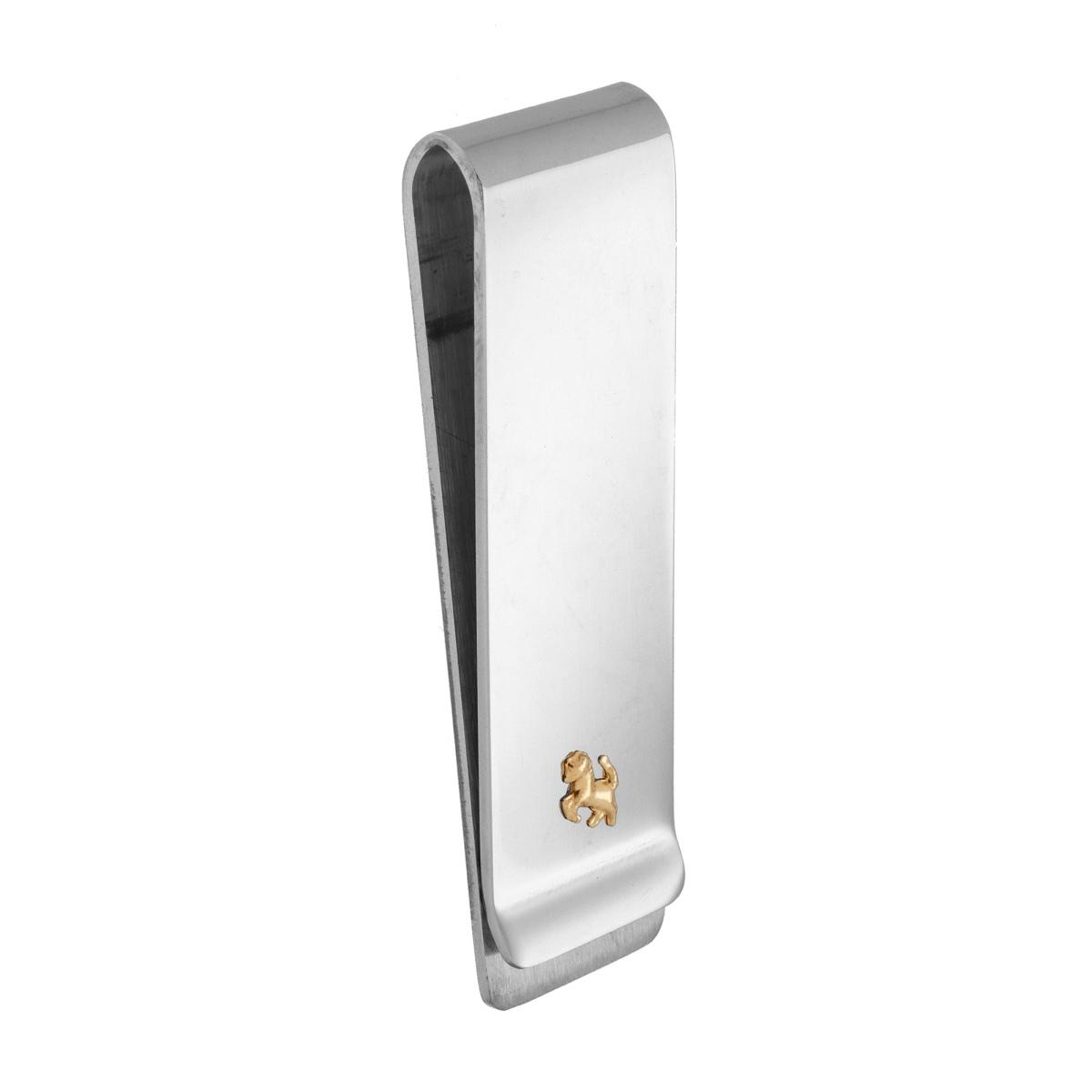 Fermasoldi plain con accessorio a forma di cavallo rampante colore oro, con lavorazione liscia e lucida.