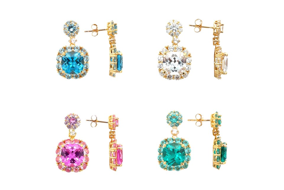 - Pietra: Grande zircone centrale quadrato, puro e luminoso, circondato da corona di zirconi