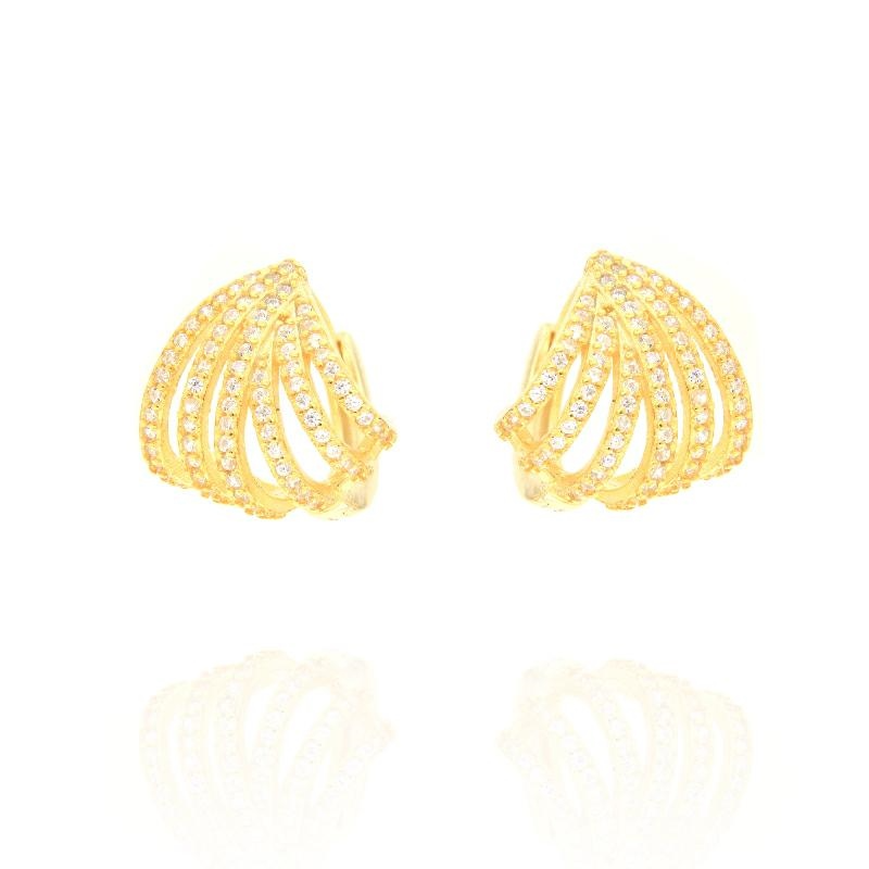 Orecchini conchiglia media, deliziosa, contiene al suo interno la parte inferiore del lobo, luce massima. Argento 925 e zirconi.