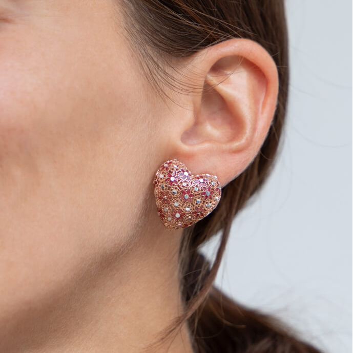 Orecchini Cuore, lavorazione artigianale in laboratorio orafo