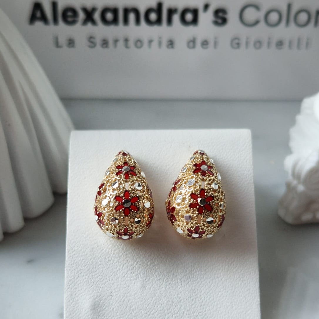 Orecchini Goccia, Preziosi, in Filigrana, Argento 925 e Bagno in Oro