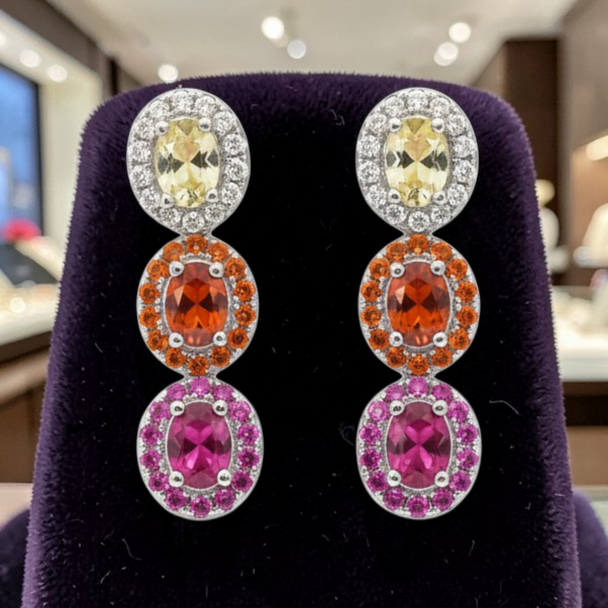 DIMENSIONI - dimensions: lunghezza 2cm PESO - weight: 3 g MATERIALE - material: ARGENTO 925 - silver 925 COLORE - color: RODIO - rodium galvanic Cubic zirconia: MULTICOLOR ACCESSORIO - accessory: zirconia COLORE ACCESSORIO - accessory color: lemon, fucsia, arancione APPLICAZIONI - applications: ZIRCONI - cubic zirconia INCASTONATURA - setting: A 4 GRIFFE CHIUSURA - closing: farfallina GENERE - gender: DONNA - woman
