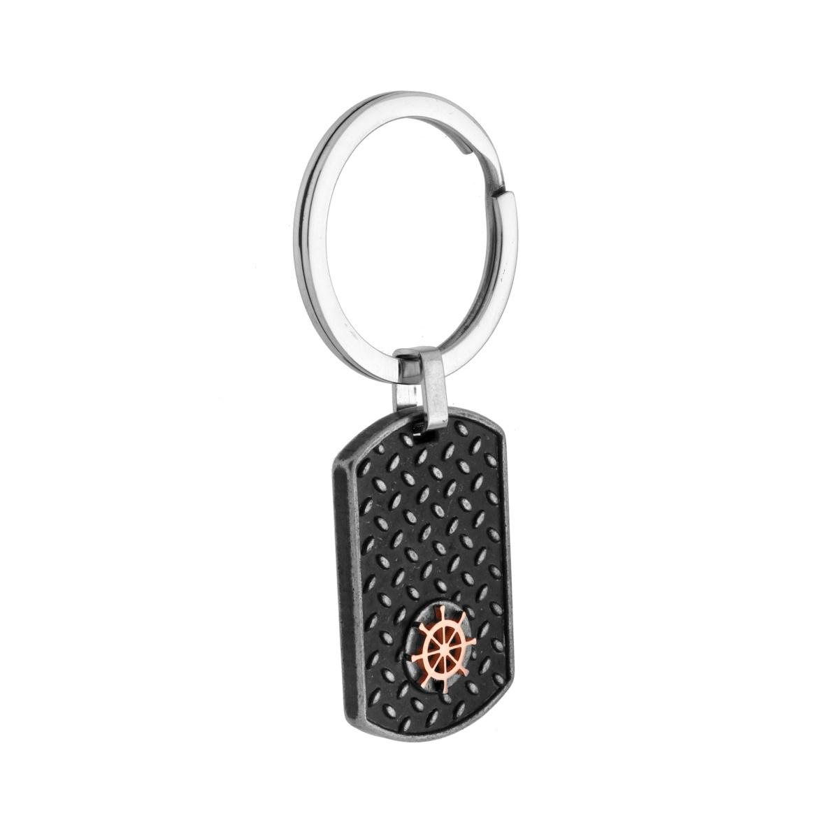 Portachiavi Rettangolare con Timone Rosa in ACCIAIO Brunito